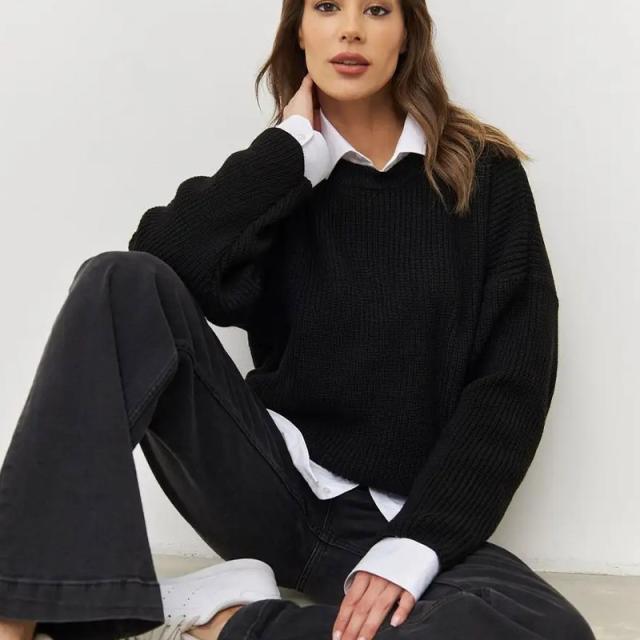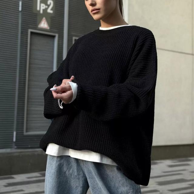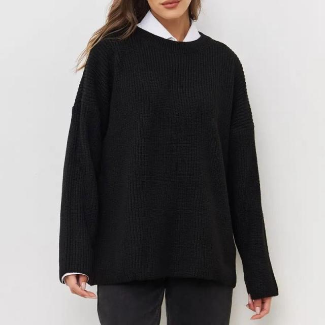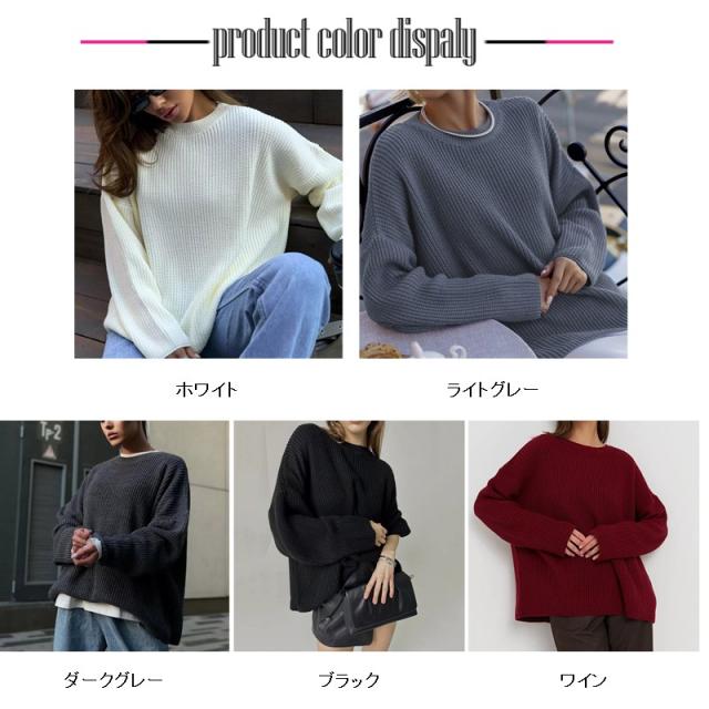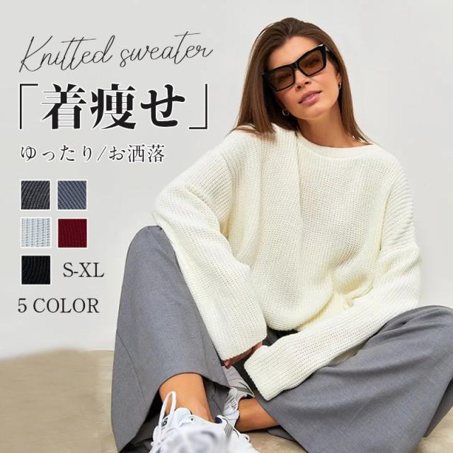ニット セーター 長袖 レディース プルオーバー 丸首 トップス ゆったり シンプル 無地 春秋 冬物 ベーシック 大人 可愛い 長袖 ロング