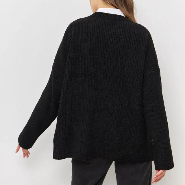 ニットセーター レディース ニット セーター クルーネック ゆったり 女性 ニットトップス 長袖 ロングセーター レトロ お洒落