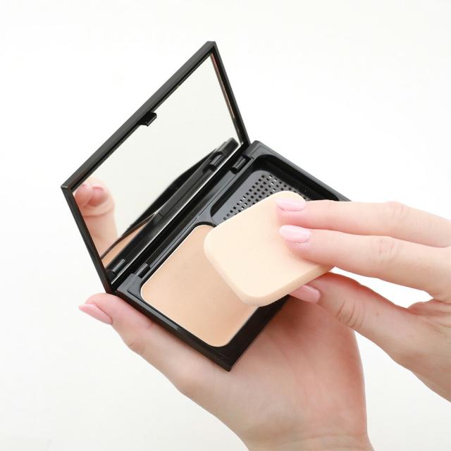 スキンケアで肌を整えた後、付属のスポンジもしくは指に適量をとり、顔全体に薄く伸ばします。
