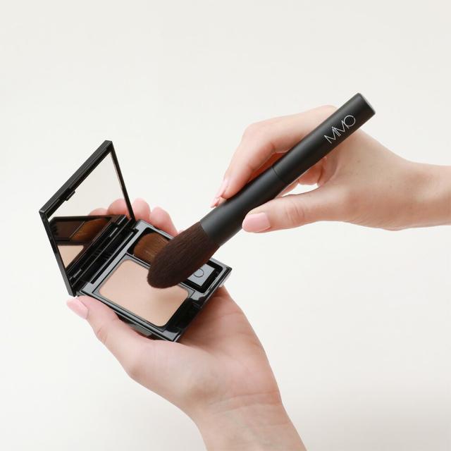 1.ハイライターの表面をやさしくすべらせるようにしてブラシにパウダーを含ませてください。
