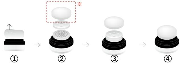 ①パフを取り外す。 | パフを洗ってお使いいただく場合