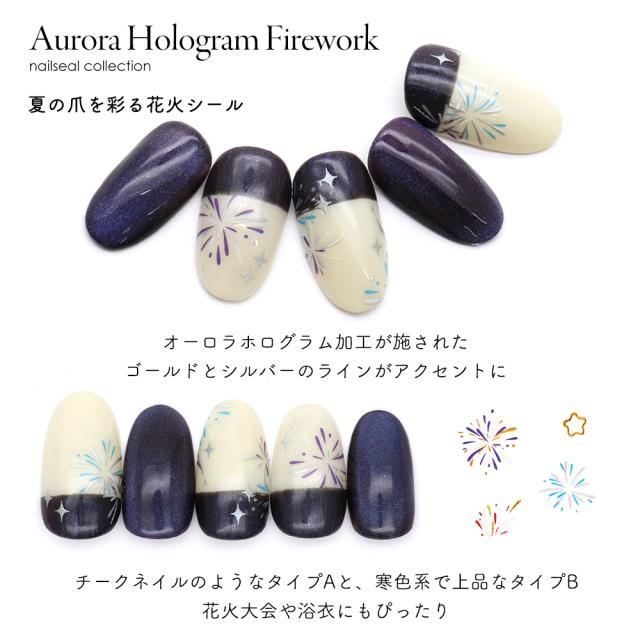 ネイルシール オーロラホロ花火シール [ゴールド 金/シルバー 銀] 全4種