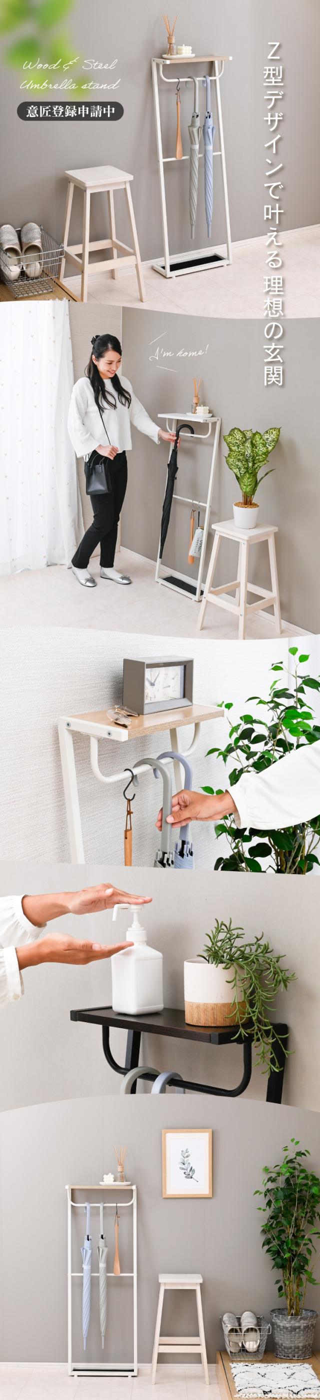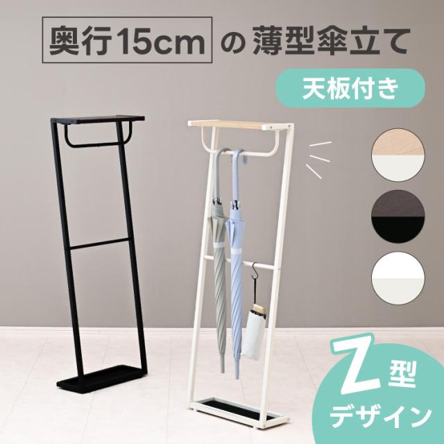 天板付き 傘立て スリム 奥行15cm 薄型 Z型 アンブレラスタンド 玄関 収納 コンパクト おしゃれ 北欧 省スペース シンプル 木製 アイアン 引っ掛け かける 傘収納 傘立 かさ立て 受け皿付き