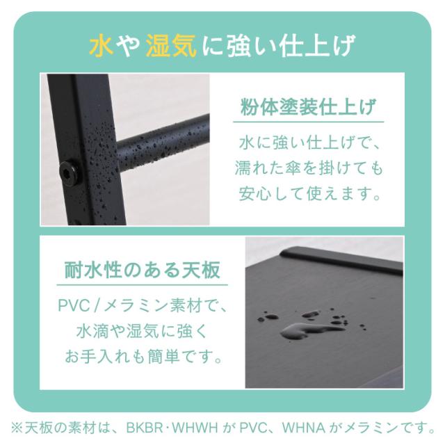 | 材質 | ・本体:鉄 ・天板:カラーにより仕上げが異なります。 BKBR・WHWH:合成樹脂化粧繊維板(PVC) WHNA:合成樹脂化粧繊維板(メラミン) |
