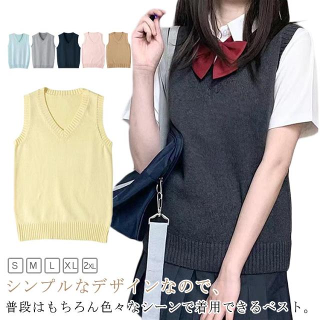 全10色 夏用 スクールベスト ニット 中学 ベスト 女子高生 女子 スクール セーター 無地 シンプル 涼しい 制服ベスト 制服 薄手 通学 JK 学生 Vネック ニットベスト 夏 秋 無地 レディース ニットベスト かわいい チョッキ 春 ベージュ グレー