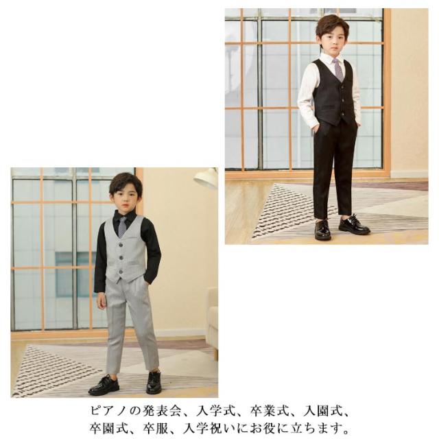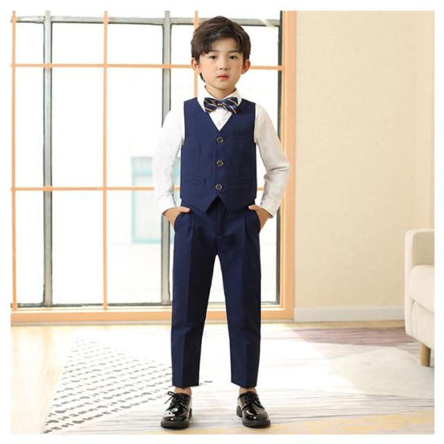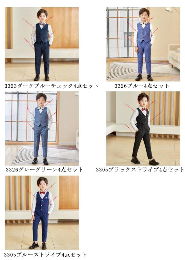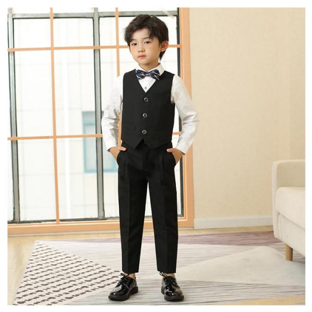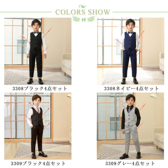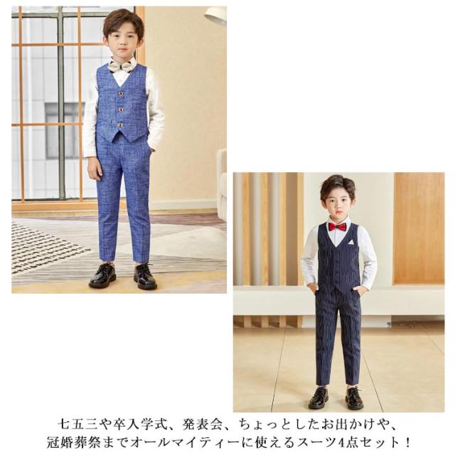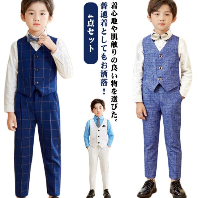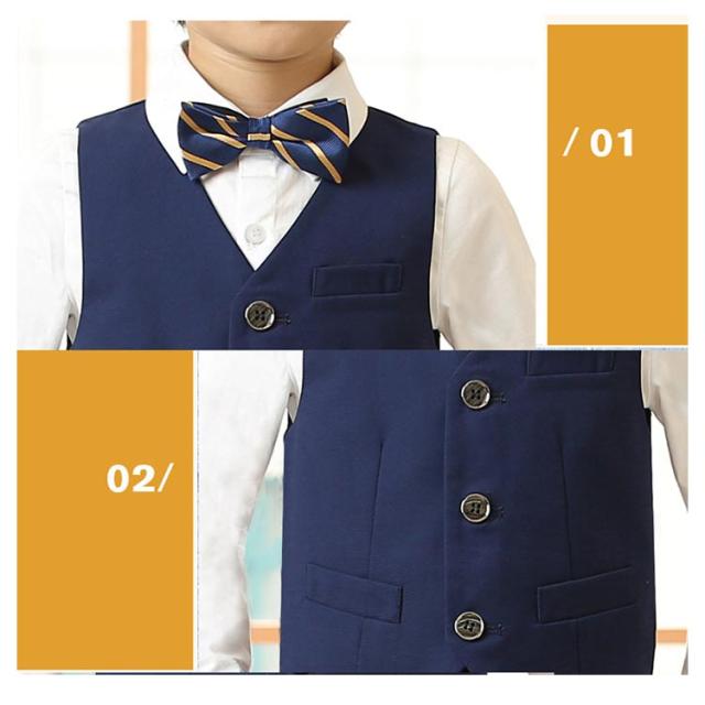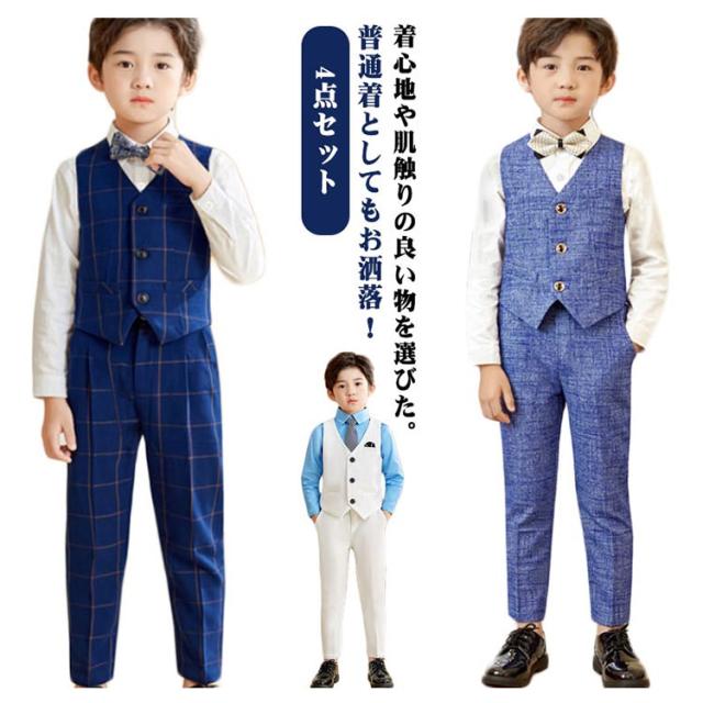 男の子 フォーマルスーツ タキシード 子ども服 入学式 卒園式 お受験 発表会 結婚式 ベストセット ベスト ズボン 蝶ネクタイ 4点セット ベストスーツセット ブラック ネイビー ブルー ホワイト 子供服 長袖 ベスト 端午の節句 百日祝い お食い初め