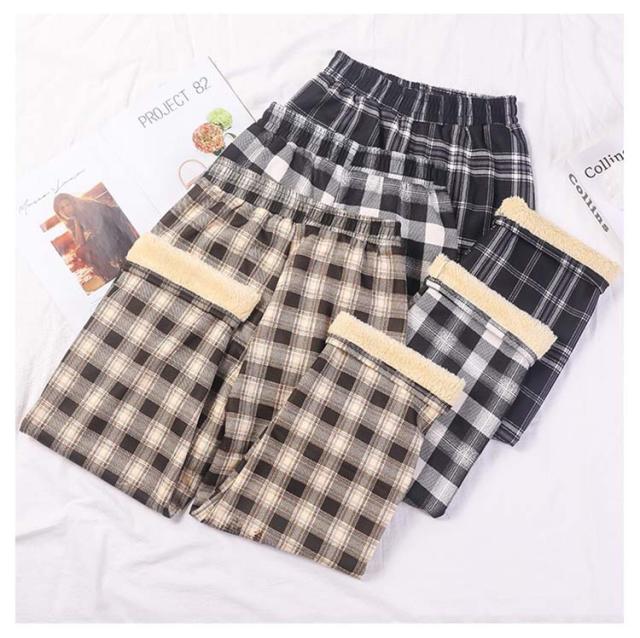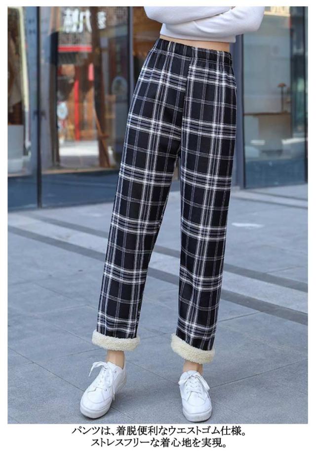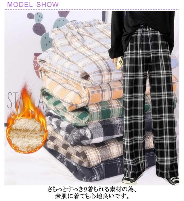 | 暖かい裏ボアチェックパンツ! さらっとすっきり着られる素材の為、素肌に着ても心地良いです。 パンツは、着脱便利なウエストゴム仕様。ストレスフリーな着心地を実現。 普段使いはもちろん、上品な見た目なので、家の近所のスーパーやコンビニに出かけることもできます。 | |
