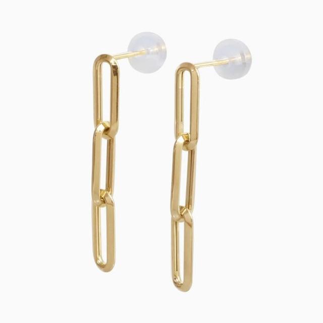 18金 K18 18k GOLD ゴールド 地金 ピアス スタッド式 両耳 金属アレルギー対応ピアス シリコンキャッチ付き アクセサリー ジュエリー 中空 小豆チェーン ロングラディアント キラキラ揺れる シンプル 軽い レディース 記念日 誕生日 お祝い 贈り物 プレゼント ギフト