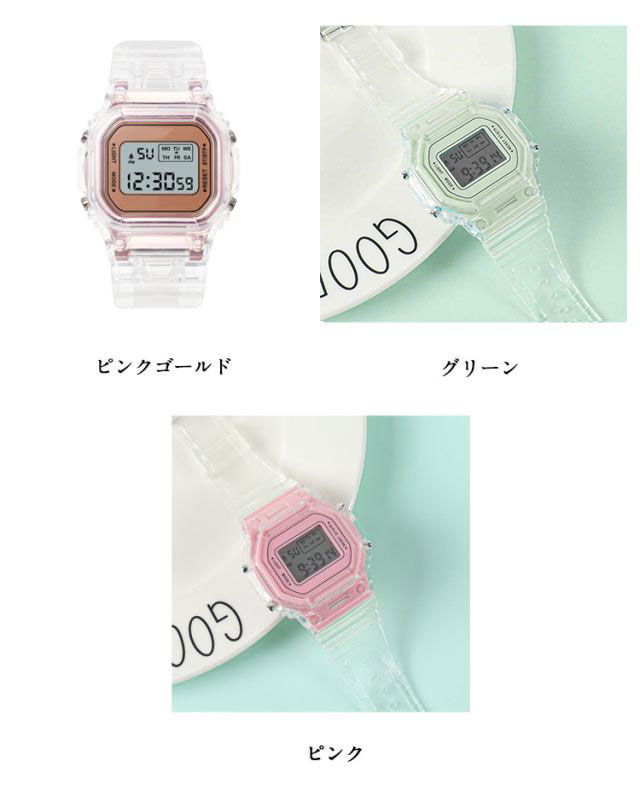 | 【魅力的なレディースデジタル腕時計】 スタイリッシュで可愛らしい、そして多機能なレディースデジタル腕時計 【クリアバンドが可愛いデザイン】 透明感のあるクリアバンドが、手元をおしゃれに演出します。軽やかなデザインで、どんなファッションにも合わせやすいのが魅力です。 【簡単設定】 誰でも簡単に操作できるシンプルな設定方法。忙しい朝や外出先でもすぐに設定が可能です。 【生活防水】 日常生活の水しぶきや雨にも対応する生活防水機能を備えており、安心してお使いいただけます。 【日付表示】 日付表示機能付きで、毎日のスケジュール管理が楽になります。 ストップウォッチ】 スポーツやトレーニングに最適なストップウォッチ機能を搭載。正確なタイム計測が簡単に行えます。 【秒数表示】 秒単位での正確な時間表示が可能。時間管理が必要なシーンで役立ちます。 このレディースデジタル腕時計は、デザイン性と機能性を兼ね備えたアイテムで、スポーツから日常生活まで幅広くお使いいただけます。 普段のファッションにさりげなく取り入れられる可愛いデザインで、毎日のコーディネートがさらに楽しくなること間違いなしです。 | |