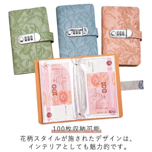 お札 お札 ダイヤルロック付き お札封筒貯金 花柄スタイル プリント柄 貯金箱 100枚収納可能 貯金箱 貯金ファイル バインダー お金仕分け 現金節約バインダー おしゃれ 封筒貯金 現金詰めバインダー 折らない 札