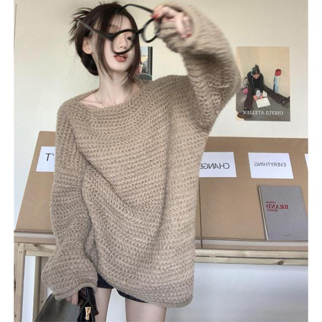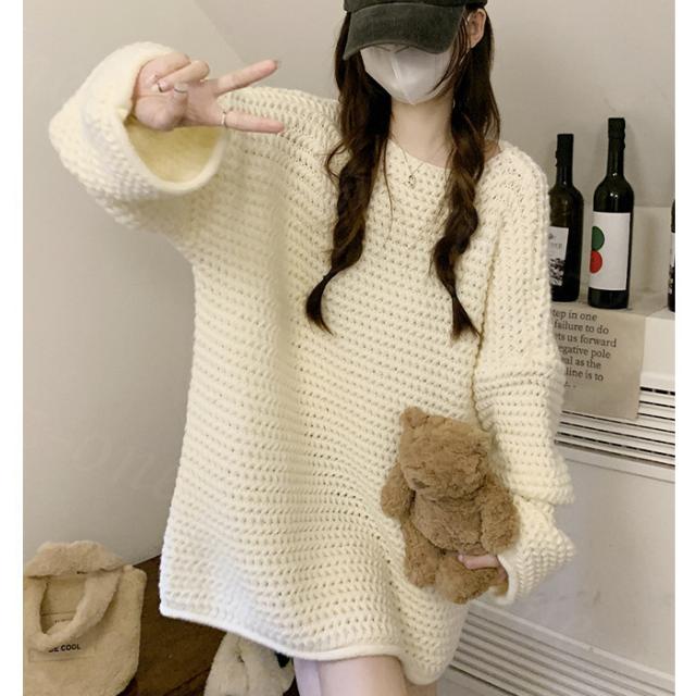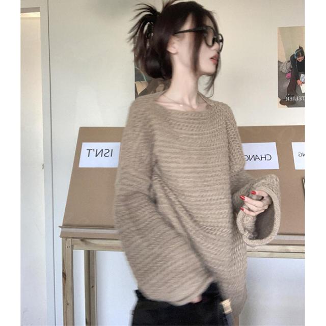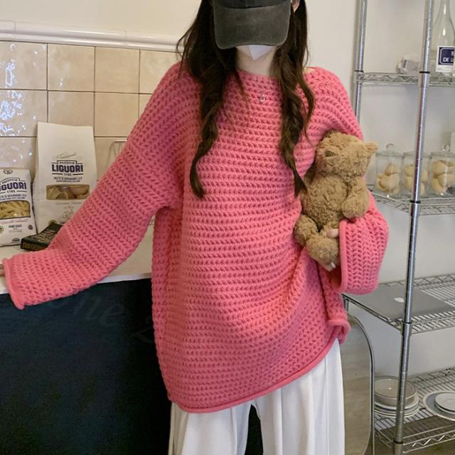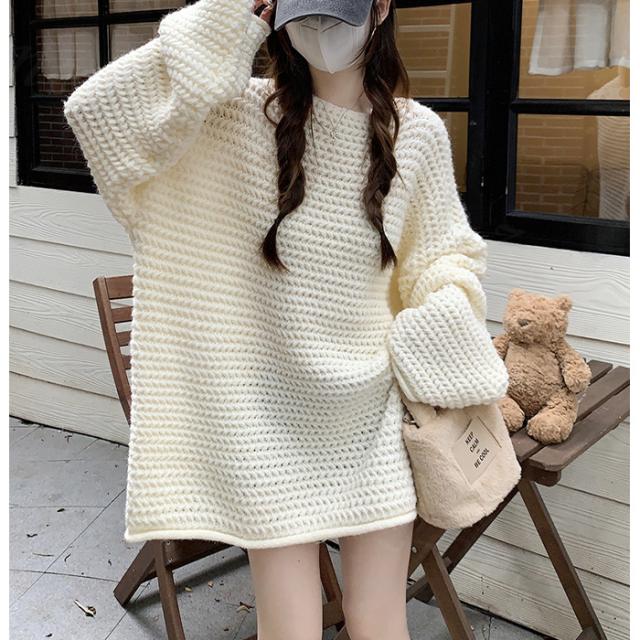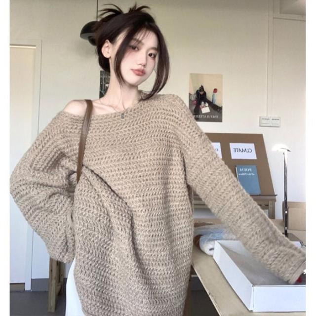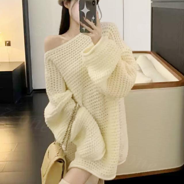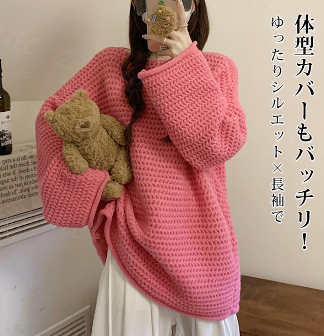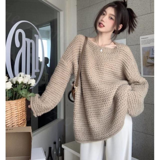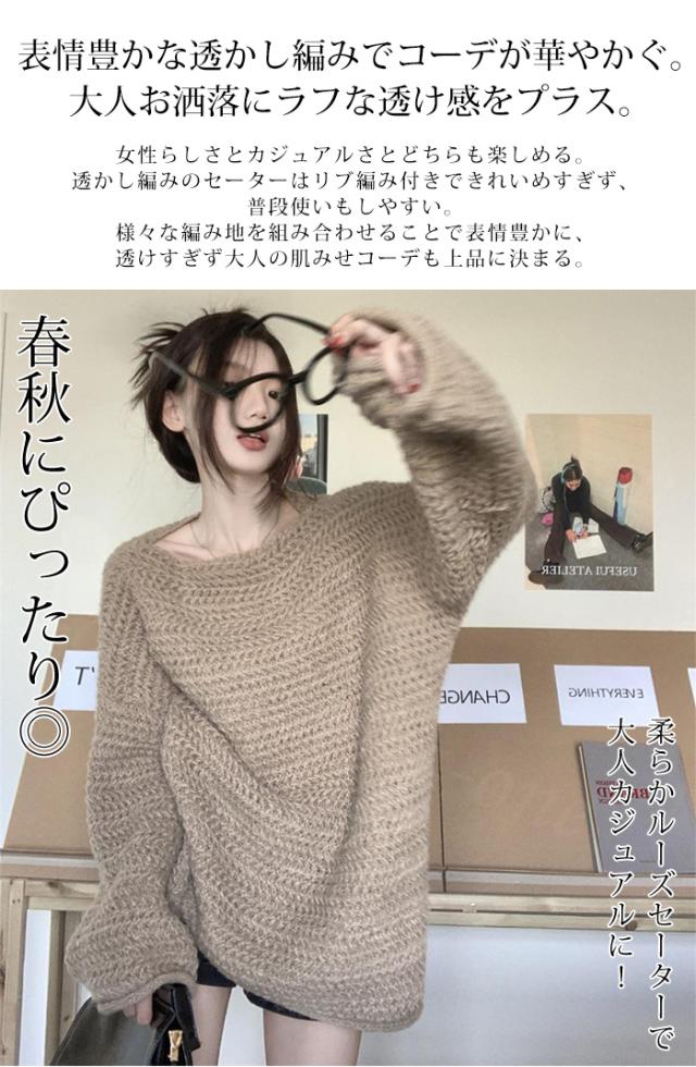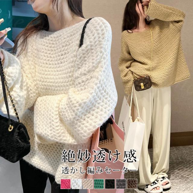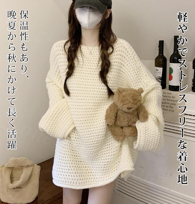 透かし編みニット 無地 秋冬 新作 ニット レディース トップス 長袖 クルーネック 重ね着 透け 透かし編み 柄編み プルオーバー ゆったり シンプル きれいめ 抜け感 スタイリッシュ 体型カバー 着痩せ サマーニット ホワイトデー 卒業式