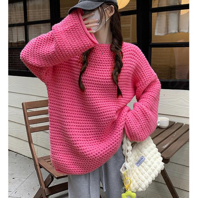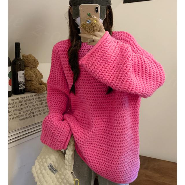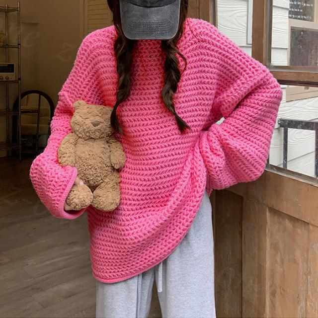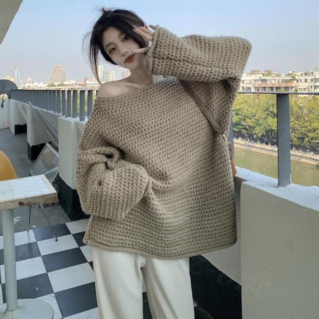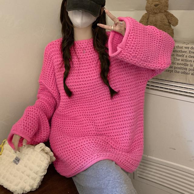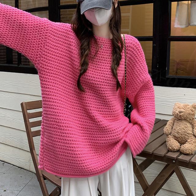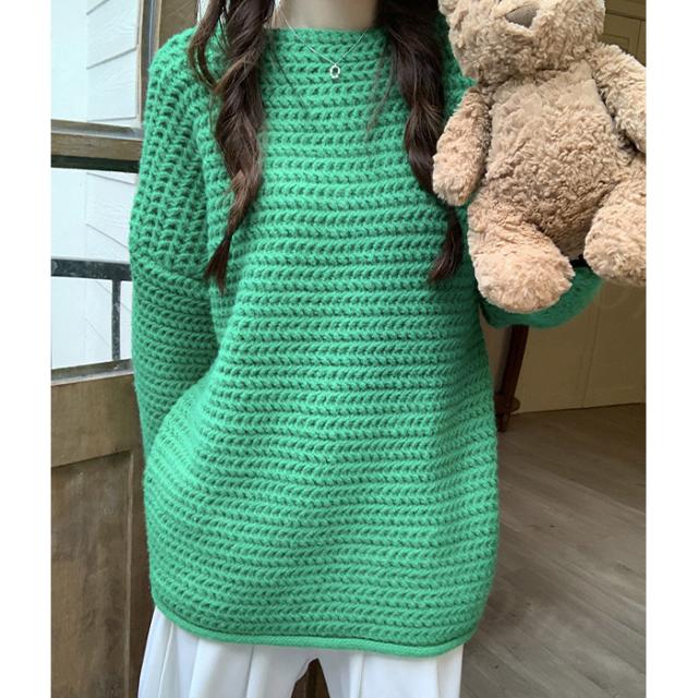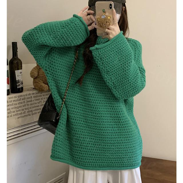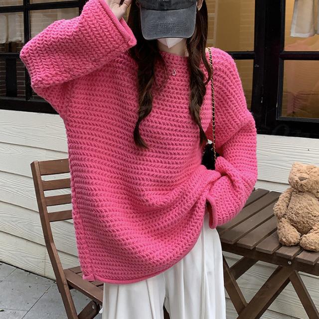 柔らかくてゆったりしたシルエットの長袖ニットプルオーバー。