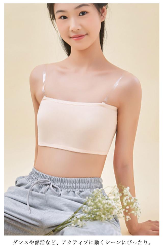 キッズ ストラップレス ブラ 2色セット 学生 落ちない 2色セット カップ付き ずれない チューブトップ 綿 コットン ベアトップ ジュニア ベリーダンス インナー ダンス衣装 レッスンウェア