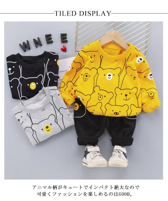 キッズ キッズ トレーナー ロングパンツ スウェット 部屋着 ベビー服 長袖 上下セット アニマル柄 くま柄 2点セット ルームウェア スポーツ 春秋服 90cm 80cm ゆったり 100cm 110cm 120cm
