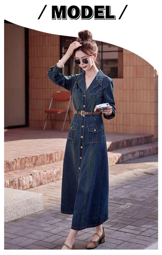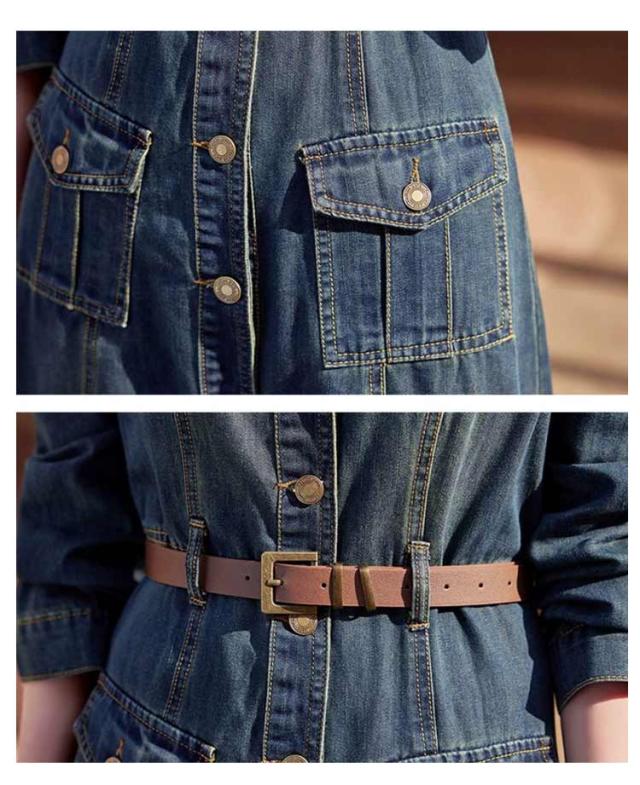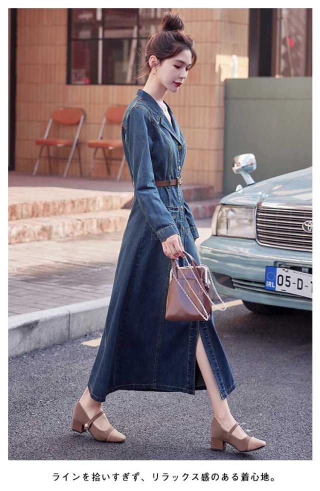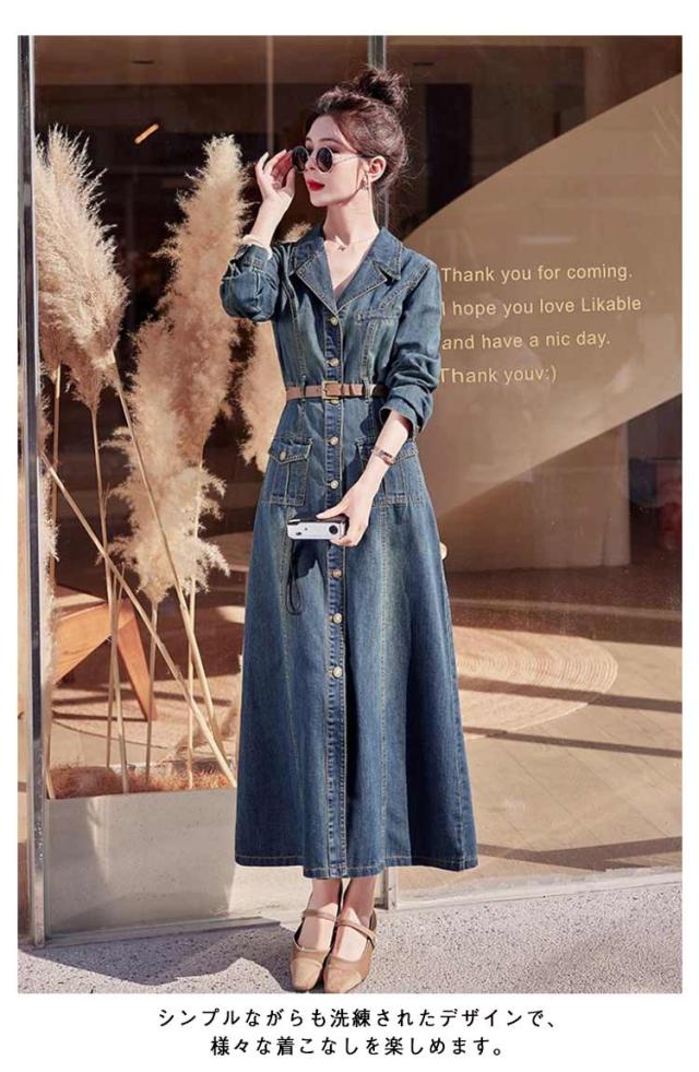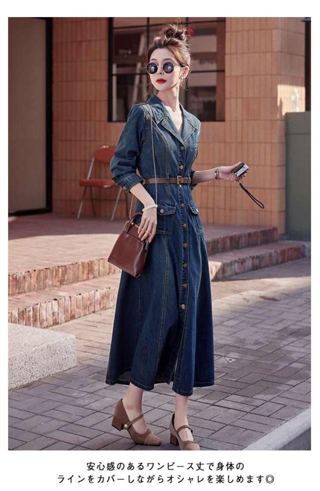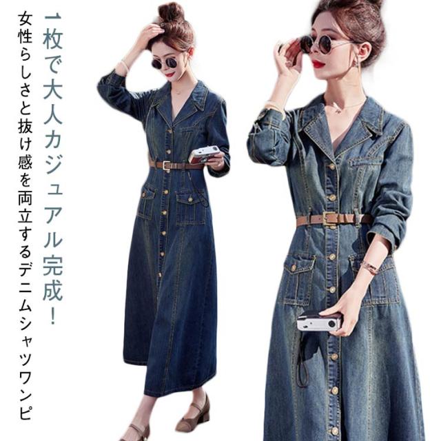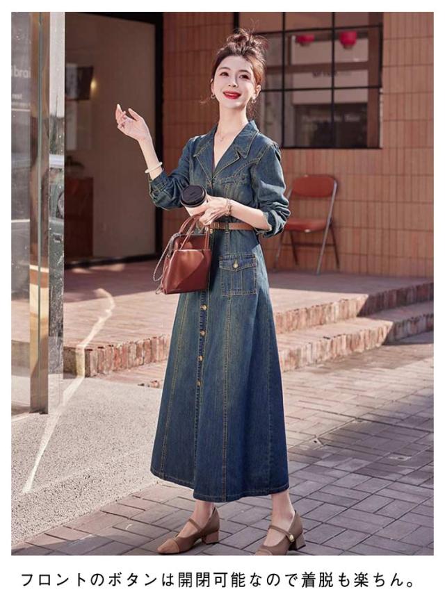 50代 長袖 デニムワンピース ロング 襟付き デニム ミリタリーワンピース ロングワンピース ミリタリー レディース ワンピース ゆったり ウォッシュ加工 大人 春 秋 冬 デニム シャツワンピース 30代 40代 マキシ丈 きれいめ デニムワンピース カジュアル 韓国風