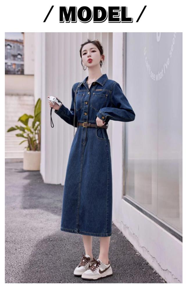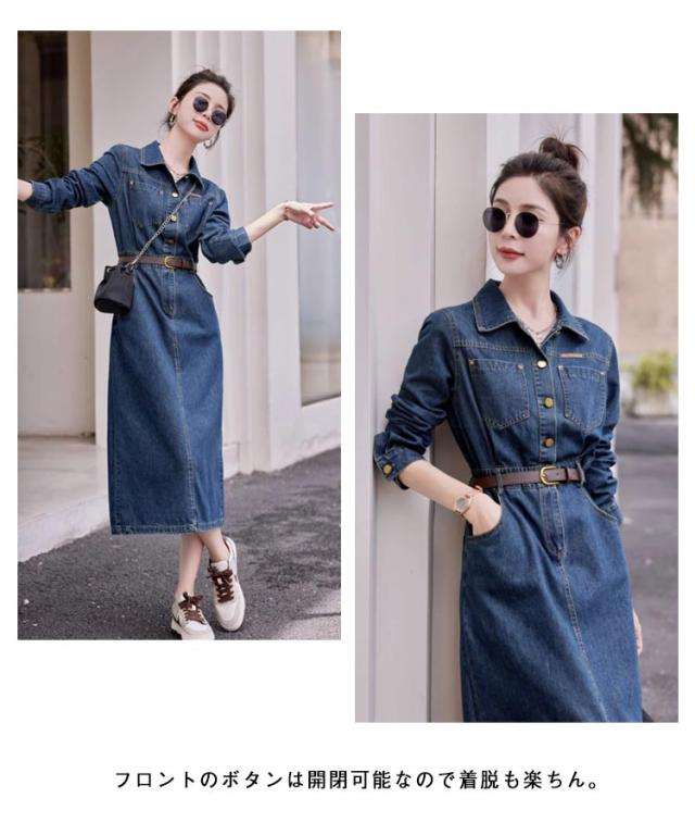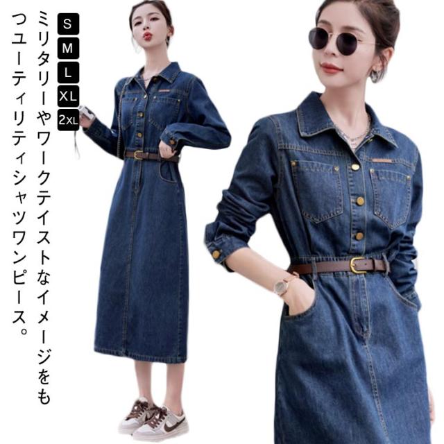 長袖 ミリタリー デニムワンピース ロング デニム 襟付き 春 ミリタリーワンピース タイト ロングワンピース 夏 きれいめ 秋 レディース デニムワンピース デニム 長袖ワンピース 30代 40代 50代 大人 カジュアル