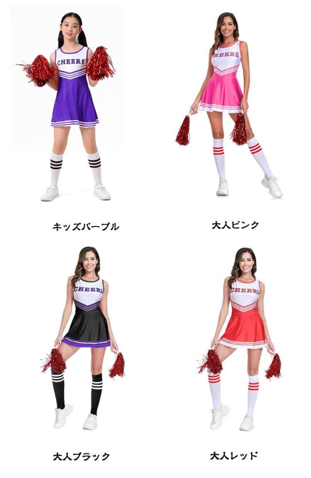 3点セット コスプレ 仮装 キッズ チアガール チアダンス ポンポン付き コスプレ 大人 衣装 3点セット コスチューム チアリーダー 変装 可愛い 応援 文化祭 学園祭 パーティー スポーツ ハロウィン