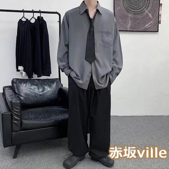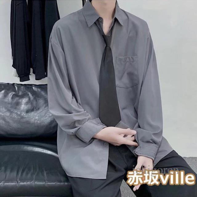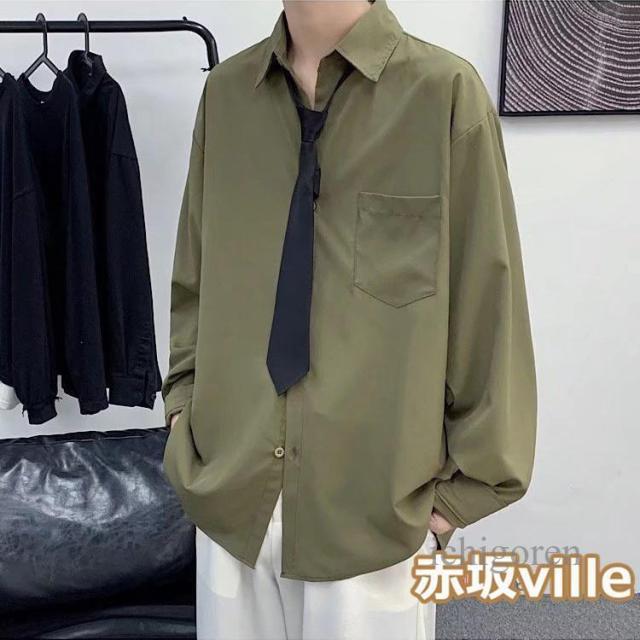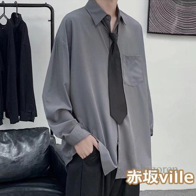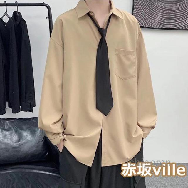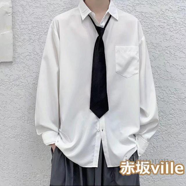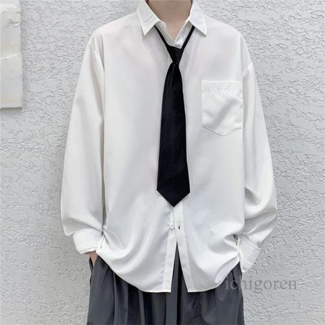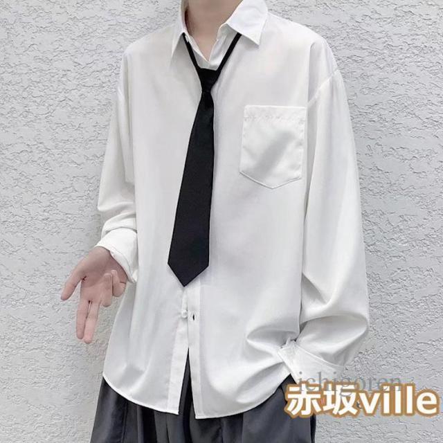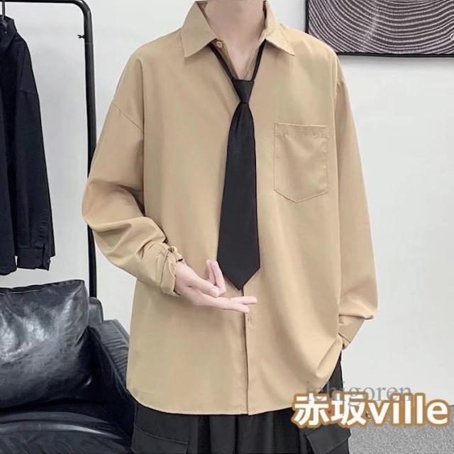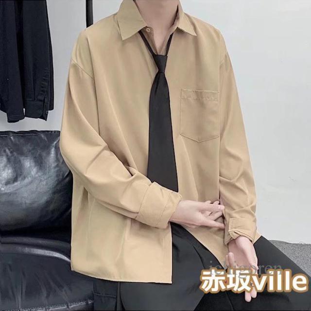 ネクタイ付き シャツ メンズ カジュアルシャツ 長袖シャツ ビジネスシャツ トップス 白シャツ 黒シャツ 無地シャツ 大きいサイズ おしゃれ 春物 秋服 夏用 長袖 ユニセックス カジュアル 韓国ファッション ストレート ダンス 衣装 父の日 ギフト プレゼント