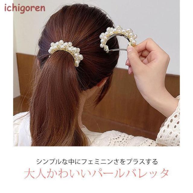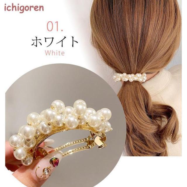 バレッタ 小さめ 韓国 パール ヘアアクセサリー かわいい シンプル 韓国ファッション ホワイト ゴールド