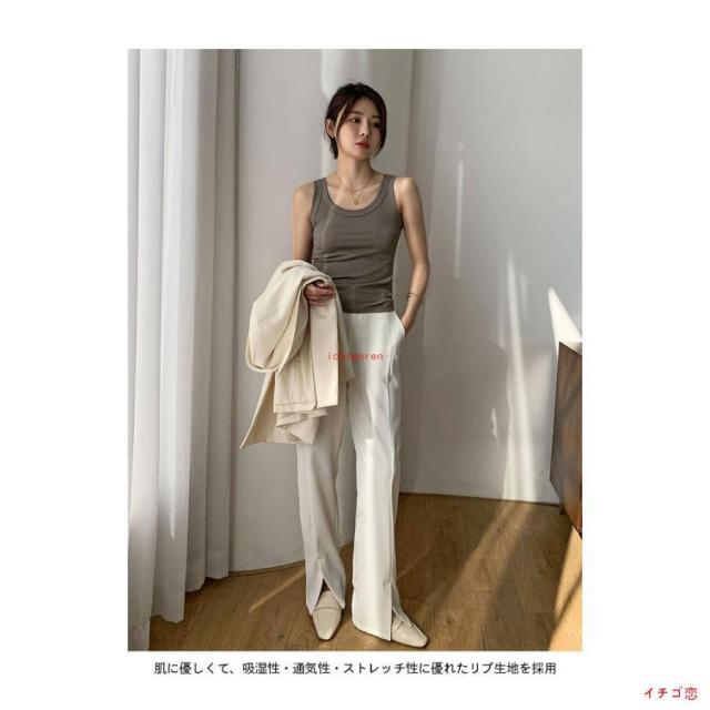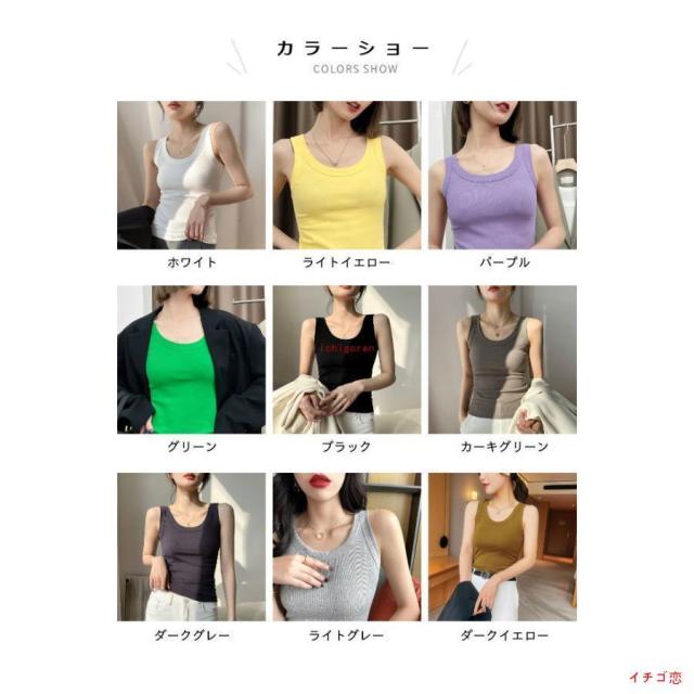 タンクトップ レディース リブ トップス タイト ノースリーブ 夏 Uネック タンクトップ デコルテ見せ ストレッチ 細身 キャミソール 通気性