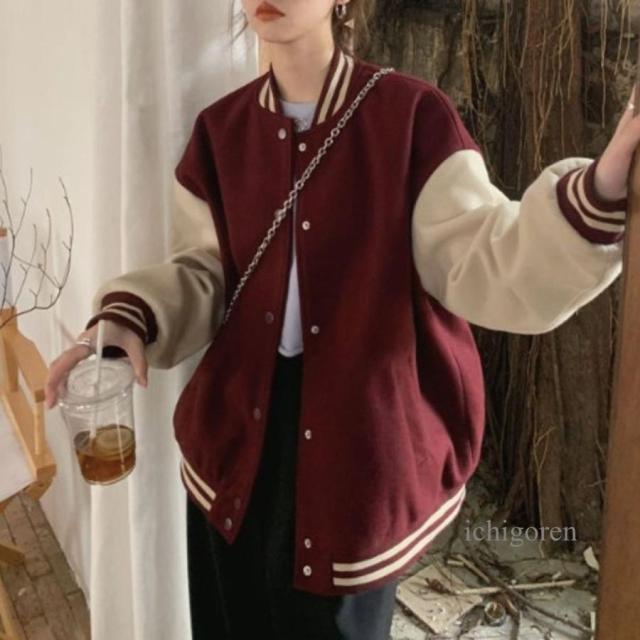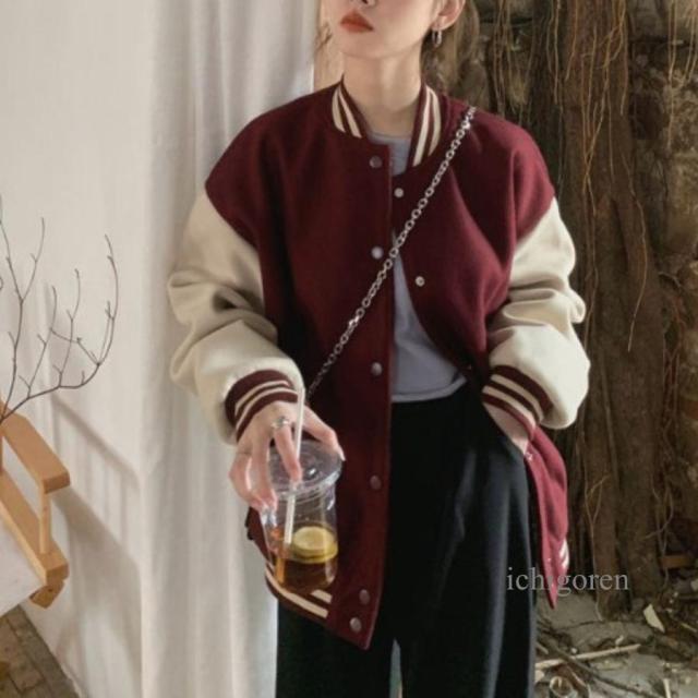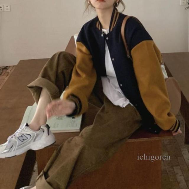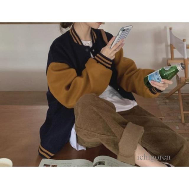 ジャケット アウター ブルゾン 羽織り スタジャン フードなし レディース リブ シンプル ベーシック バイカラー くすみカラー 大人可愛い 秋冬