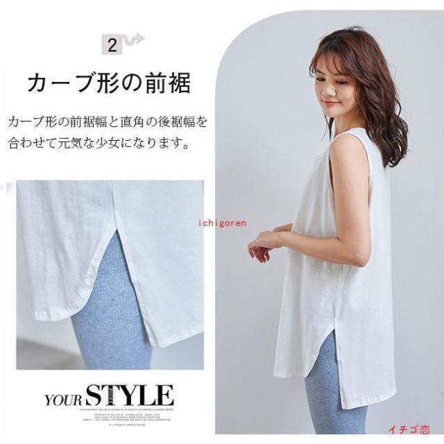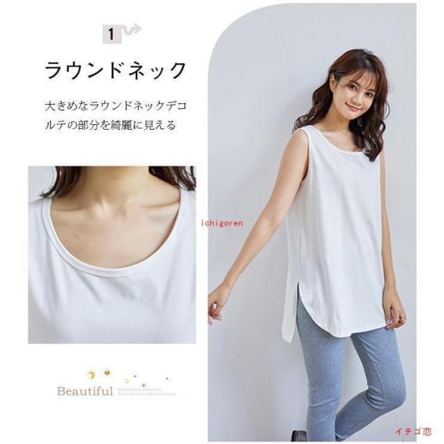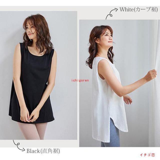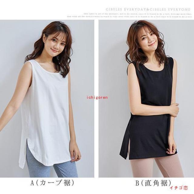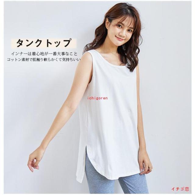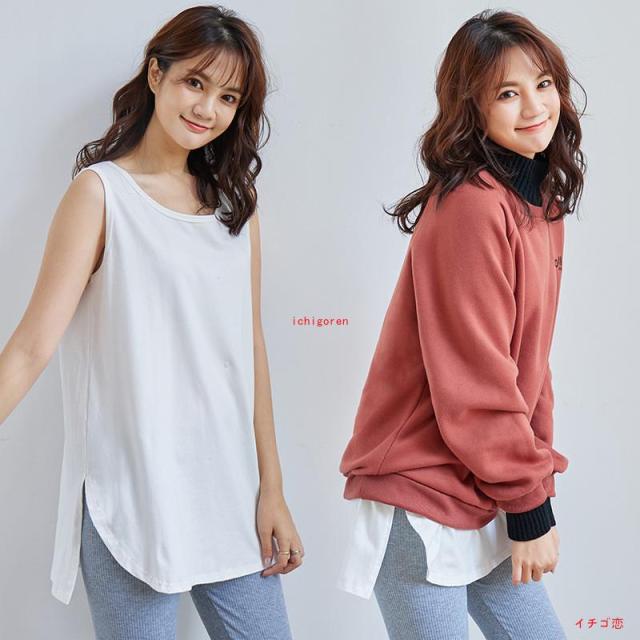 タンクトップ レイヤード インナー 重ね着風 2タイプ Tシャツ トップス ゆったり ロング丈 無地