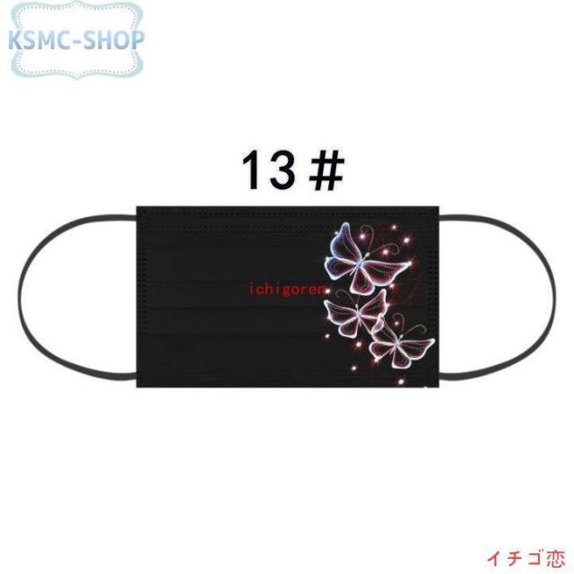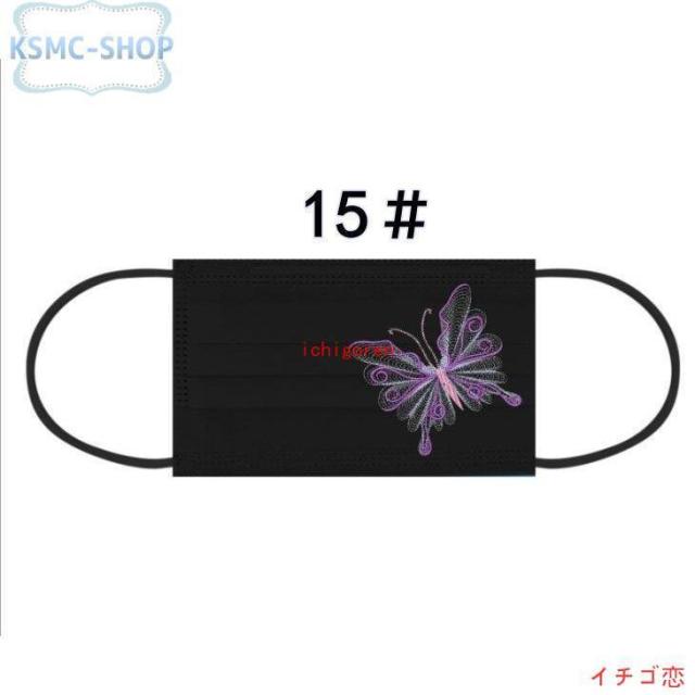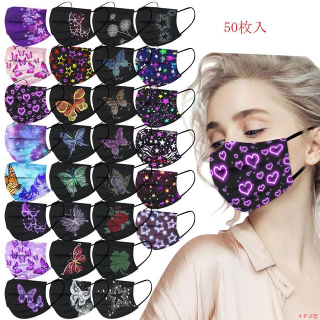 マスク 不織布 蝶柄 花柄マスク 星柄 メルトブローン 三層構造 使い捨て レース ローズ 薔薇 バラ 春夏色 おしゃれ カラー 柄入り 15柄選べる 50枚セット
