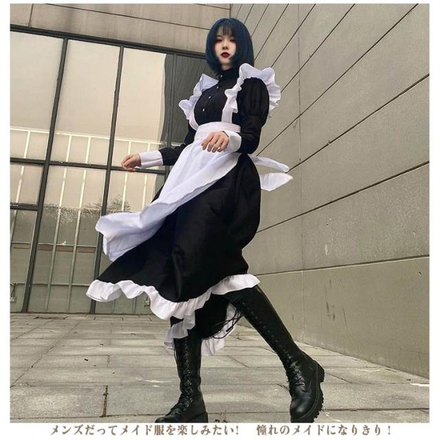 | ゴシックテイストのメイド服は、着るだけでインパクト抜群! ワンピース・カチューシャ・エプロンのセットなので、届いた瞬間からすぐにコスプレが楽しめます。 メンズだってメイド服を楽しみたい! 憧れのメイドになりきり! 正面だけでなく背面から見てもかわいいデザインです。 ハロウィンやクリスマス、仮装イベントなどで着れば目立つこと間違いなし! コスプレ衣装として定番のメイド服も、ロング丈だと新鮮! ロリータファッションに興味がある方や地雷系・病みかわテイストが好きな方、男の娘にも◎ メンズはもちろん、レディースで大きいサイズをお探しの方にもオススメ。 | |