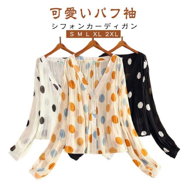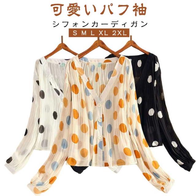 カジュアル 夏 シフォン シフォンカーディガン 羽織 パフスリーブ 水玉 ドット プリーツ カーディガン 冷房対策 薄手 アウター 日焼け対策 透け感 レディース トップス キレイめ 紫外線対策 爽やか ゆったり シフォン ファッション 白 黒 ホワイト ブラック