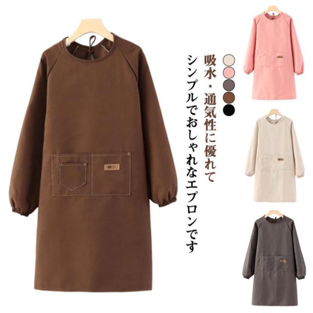 カフェ レディース シンプル 長袖 無地 メンズ カフェ 袖付きエプロン ロングエプロン 後ろ開き ポケット付き 後ろ開き ユニフォーム 大人用 割烹着 体型カバー 掃除 かっぽう着 料理 おしゃれ ゆったり 保育士 大きめ 袖付きエプロン 介護士 秋冬 防汚