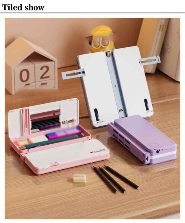 | 多機能 ペンケース 2WAY ブックスタンド・筆箱 ペンケース+読書スタンドの2WAY:勉強時間がもっと快適に。 多段階角度調節可能:透明ブッククリップ付きで内容が見やすい。 大容量収納:ダブルレイヤー設計、筆記具や小物を整理しやすい。 便利な付属機能:ミニ鏡・ホワイトボード・鉛筆削り付き。 折りたたみ式でコンパクト:軽量で持ち運びやすく、学校や自宅学習に最適。 | |