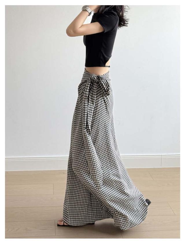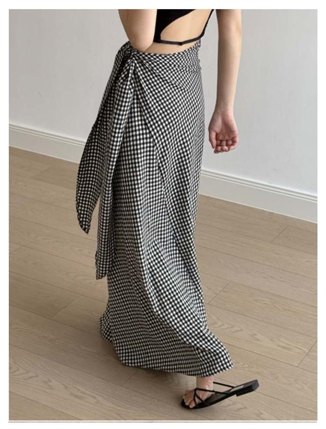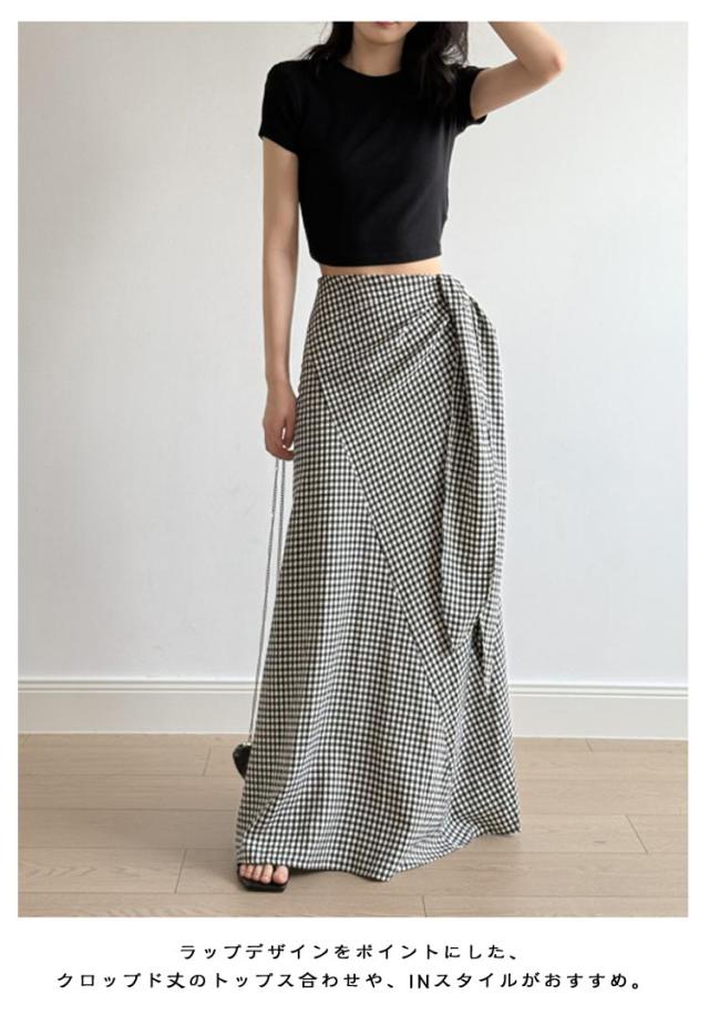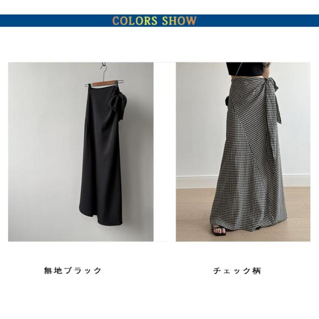 スカート シュクールスカート ウエストリボン タイトスカート マキシスカート チェック柄 ラップ風スカート ウエストリボン マキシ丈 ラップスカート ロングスカート マキシ Iラインスカート 海 リゾート 旅行 無地ブラック 黒