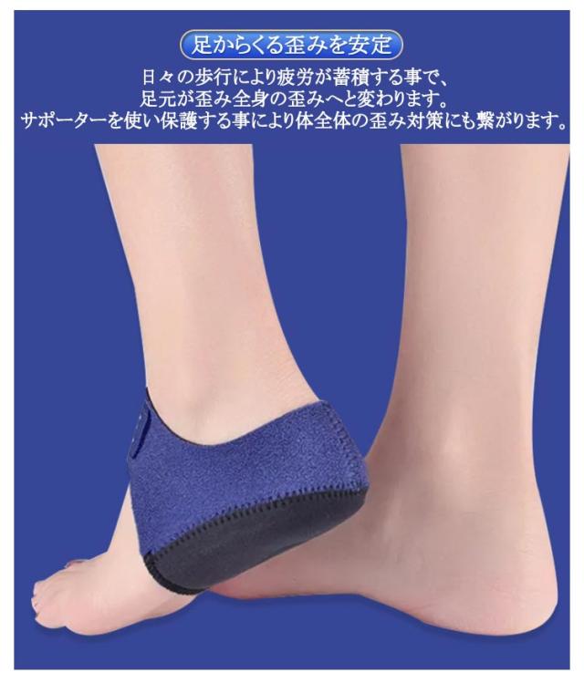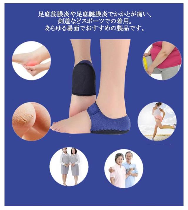 | 快適な歩行を衝撃吸収でサポートします。立ち仕事やかかとの痛みをお抱えの方のために開発しました。男女兼用で使いやすいデザインです。かかとサポーター。 【辛いかかとのトラブル対策】毎日の歩行や立ち仕事での疲労、ランニングやスポーツでの怪我、あらゆる踵のトラブルをしっかりとケアするかかとサポーター。 足底筋膜炎や足底腱膜炎でかかとが痛い、剣道などスポーツでの着用。 あらゆる場面でおすすめの製品です。 【足からくる歪みを安定】日々の歩行により疲労が蓄積する事で、足元が歪み全身の歪みへと変わります。 サポーターを使い保護する事により体全体の歪み対策にも繋がります。 【衝撃から守るネオプレン素材】柔らかく弾力があり衝撃吸収する特殊な素材を採用しています。伸縮性や通気性に優れているので蒸れにくく快適にご着用が可能。 【家でも外でもしっかり保護】素足での着用は勿論ですが、外出時には靴下の上からでも着用が可能。家でも外出時でもしっかりと踵の保護が可能です。 | |