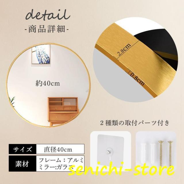 鏡 壁掛け ミラー ウォールミラー 飛散防止 40cm 壁掛け鏡 丸型 姿見鏡 全身鏡 おしゃれ 洗面所 化粧鏡 北欧 インテリア 玄関 トイレ 寝室