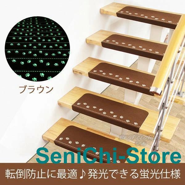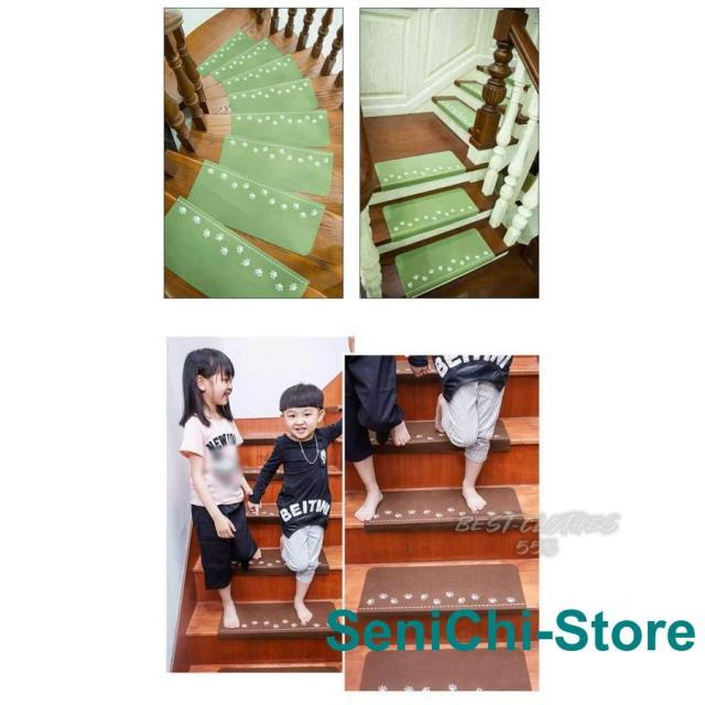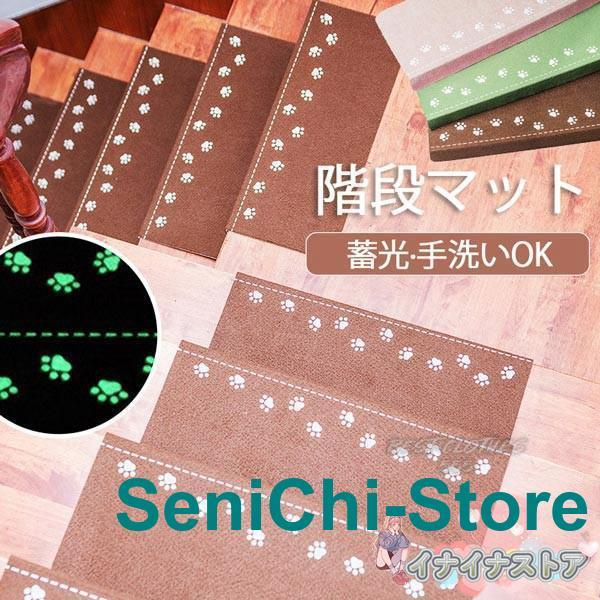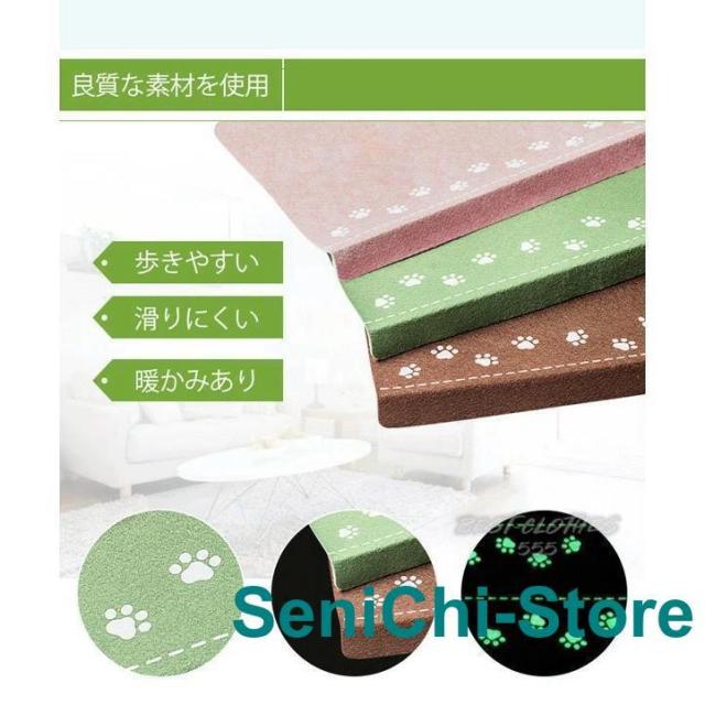 階段マット 折り曲げ付 吸着階段マット 蓄光 矩形 3色展開 22cmx70cm 蛍光 おしゃれ 階段敷物 階段 滑り止めマット 防音 廊下敷き 階段マット エレガント シンプル お手入れ簡単 洗濯可能 ベージュ ブラウン グリーン