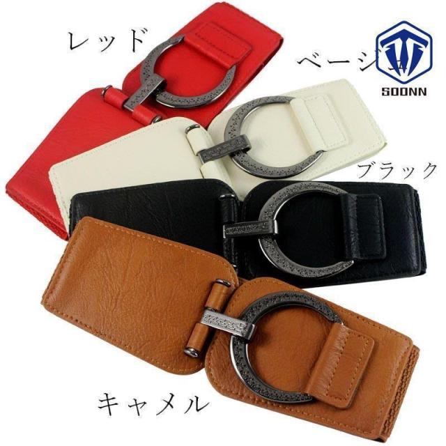 サッシュベルト レディース 女性 女子 ワイド サークル 円 フック フェイクレザー ゴム ストレッチ 伸縮 ファッション小物 服飾雑貨 ウエストマー