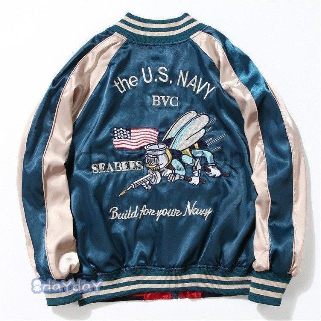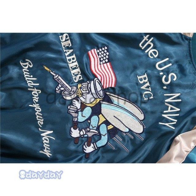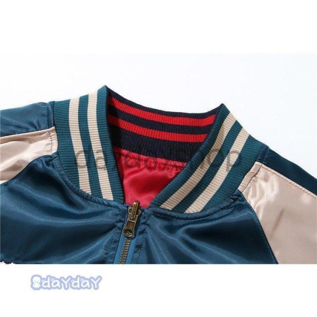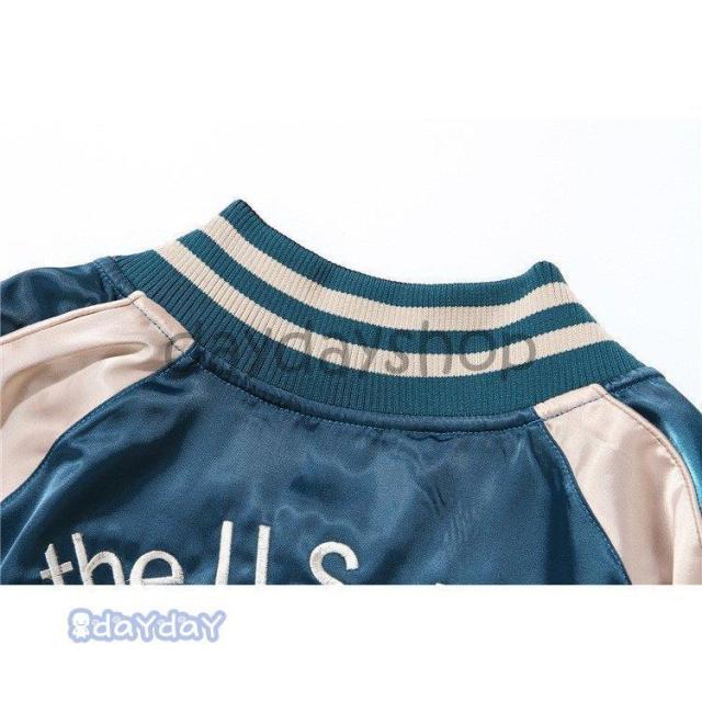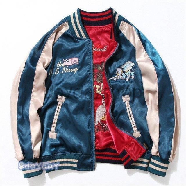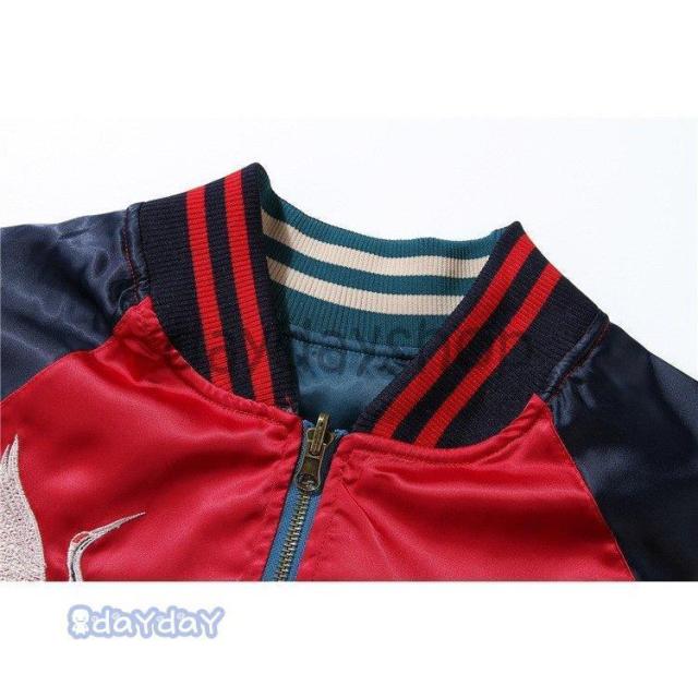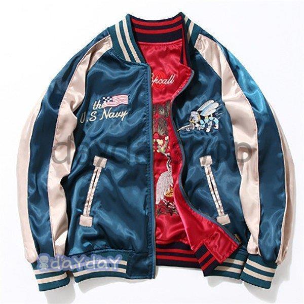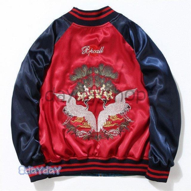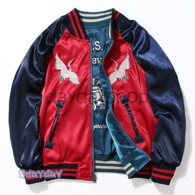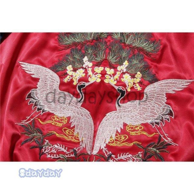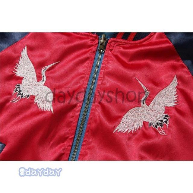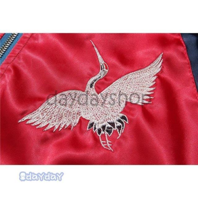 ポイントアップ スカジャン 男女兼用 横須賀メンズ刺繍 ブルゾン 両面着 鶴 サテン 光沢 リバーシブル フライトジャケット レディース アウター 春 秋 長袖