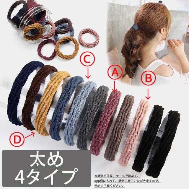 ヘアゴム ヘアアクセ おしゃれ シンプル セット 10本セット 太め 髪留め 金具なし 繋ぎ目がない アクセサリー ブラック 黒