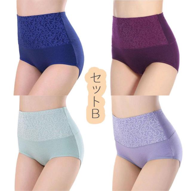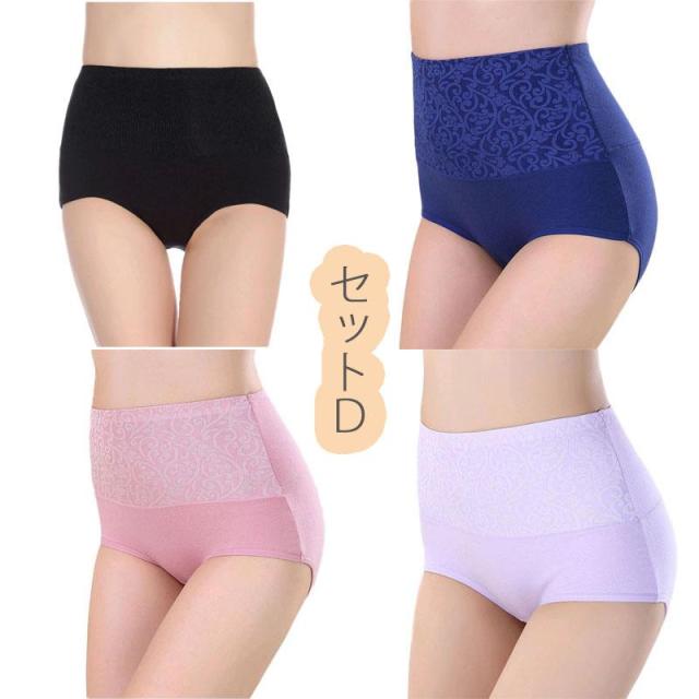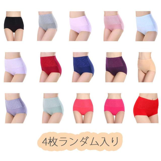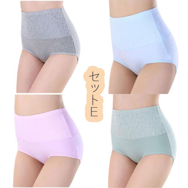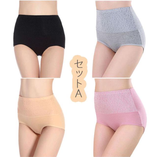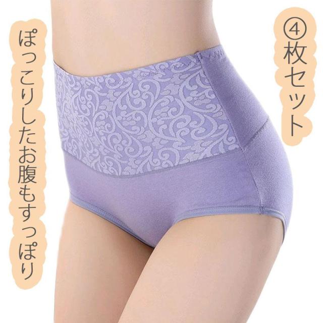 4点セット 綿 ショーツ レディース 40代 ハイウエスト お腹引き締め ヒップアップ 大きいサイズ 下着 パンツ福袋