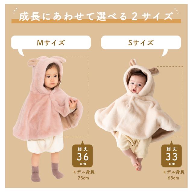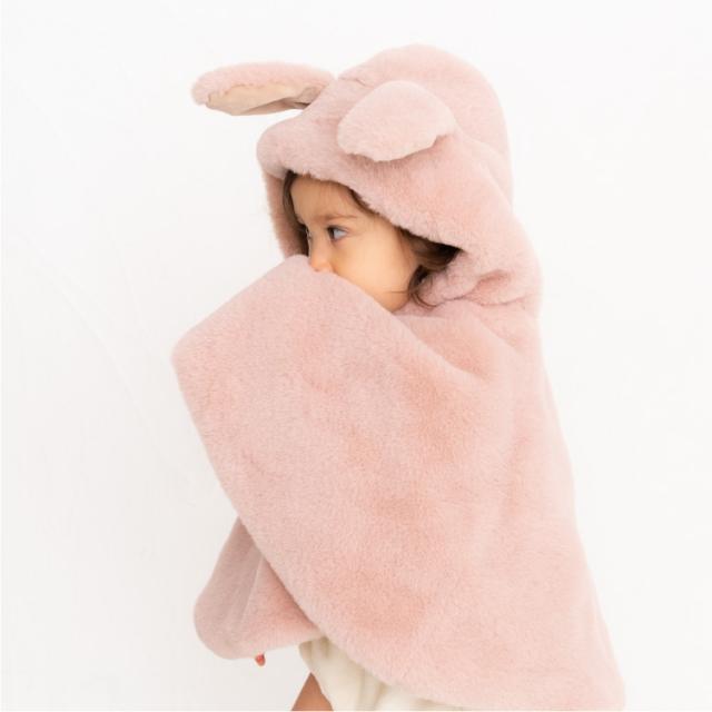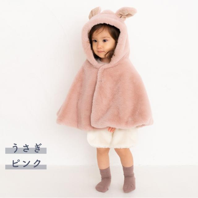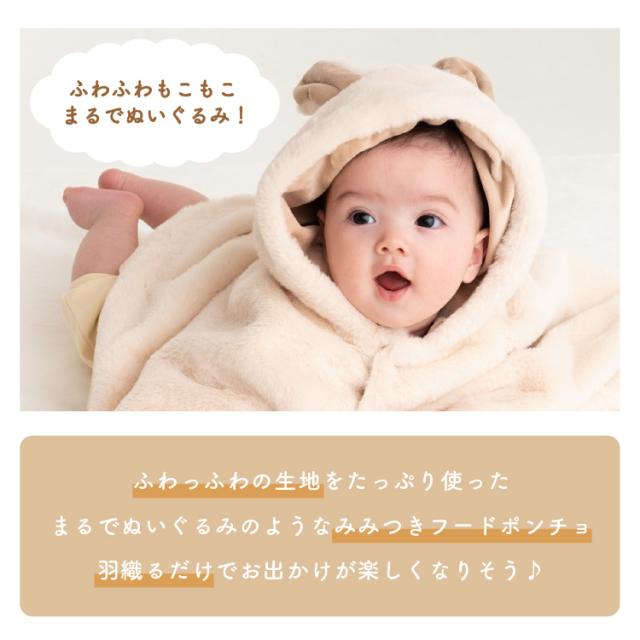 ふわふわもこもこ♪まるでぬいぐるみのような、みみ付きのフードポンチョです。