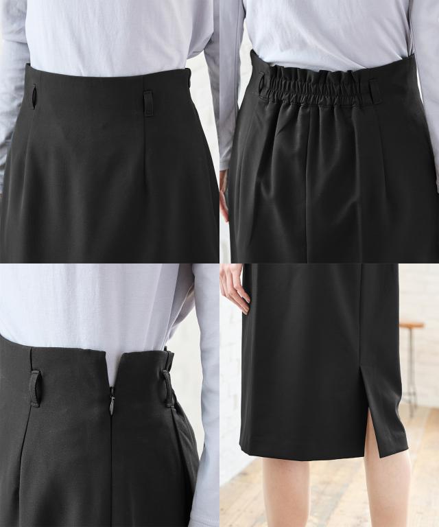 ウエストはフロントすっきりで後ろのみにゴムを入れ、きれい見えしながら快適なはき心地。