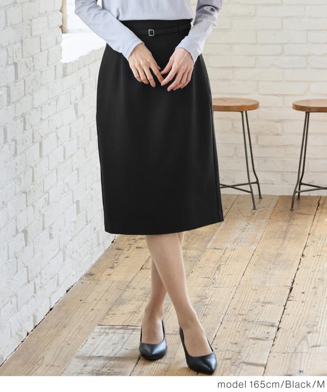 ボトムス スカート タイトスカート ひざ丈 オフィス きれいめ ベルト付き ストレッチ 裏地付き レディース Honeys ハニーズ ベルト付タイトスカート