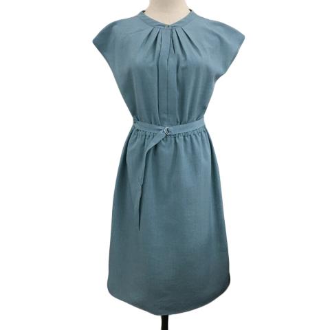 【中古】ユナイテッドアローズ closet story ワンピース フレア ひざ丈 ウエストゴム フレンチスリーブ 半袖 水色
