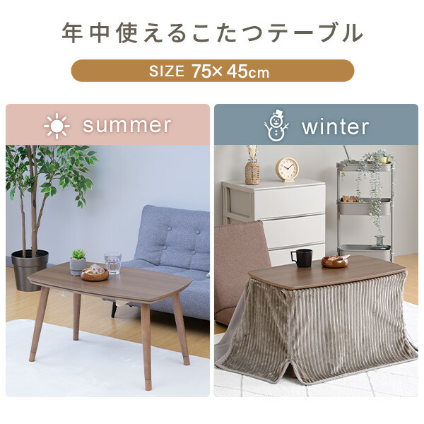 こたつ こたつテーブル こたつセット こたつ布団 ソファ前こたつ 75×45cm 高さ調節 長方形 一人用 おしゃれ 300W ヒーター コタツ テーブル ソファー前こたつ 一人用 おしゃれ 新生活 山善 YAMAZEN 【送料無料】