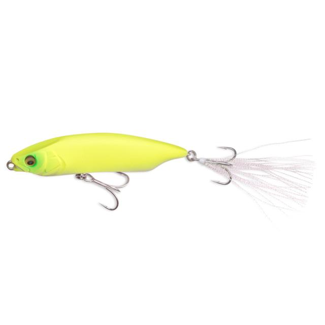 KARASHI「ダートゥイッチャー」は、トゥイッチやリトリーブの緩急により表層付近で軽快なドッグウォークアクションを披露。ジャーク時には、リップレス・ジャークベイトと呼べるほどの左右へのロングダート性能を発揮。伊東由樹のハイドロダイナミクス理論に基づくボディ形状により、適度な水噛みを感じながらのコントローラブルな操作性を実現し、安定したアクションを生み出せます。またスイミングでは弱ったベイトを彷彿させる、波間に漂うスイングアクションでターゲットを魅了。シーバスはもちろん、クロダイやオフショアに至るまで幅広いソルトターゲットにアピール。新世代のテクニカル・ソルトウォーターベイトです。