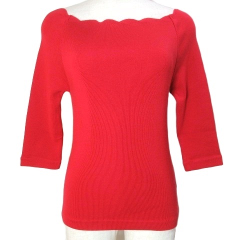 【中古】スウィングル Swingle 美品 スカラップカットソー ニット 7分袖 オフショルダー S 赤 レッド X レディース