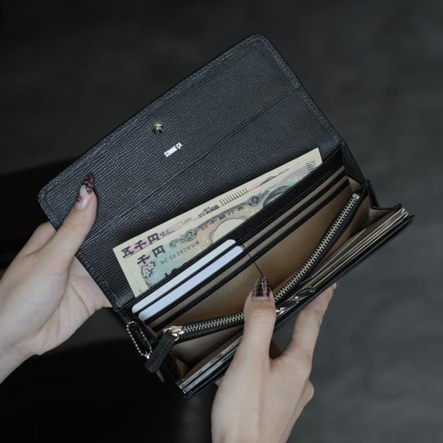 | COMME CA シュリー がま口長財布 アールをとった柔らかなラインにアクセサリーのようなブランドプレートをあしらった「シュリー」シリーズ。上品な手触りと美しいカラーが魅力の角シボ牛革を使用し、エレガントな存在感を放ちます。シリーズ名の“シュリー”は、パリのセーヌ川に架かる橋の名に由来しています。 スナップボタン式で開閉しやすく、札入れ2室と10枚分のカードポケットを配置。日常に必要な収納力をしっかり備えています。 小銭入れはファスナータイプに加え、口金式のがま口を採用。大きく開くがま口は中身が見やすく、小銭の出し入れもスムーズ。用途やシーンに応じて使い分けられる実用的な構造です。さらにフリーポケットも複数備え、レシートやチケット類の整理に便利です。 デザイン性と機能性を兼ね備えたシュリーの長財布は、日常を華やかに演出しながら実用性も高い逸品。ブランドロゴ入り化粧箱付きで、ギフトにもおすすめです。 |
