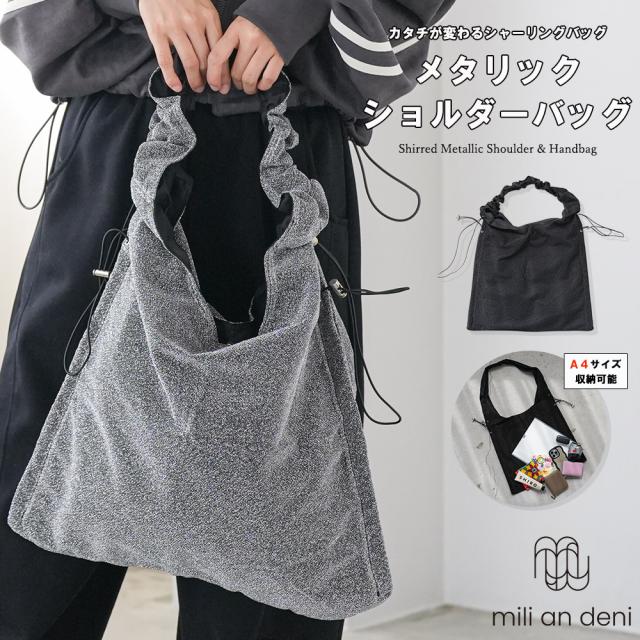 春新作メタリックショルダーバッグ 鞄 トートバッグ ハンドバッグ シャーリング インナーポケット A4サイズ収納可能 レディース バッグ 春夏 ミリアンデニ メール便(郵3) b61081