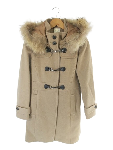【中古】ルスーク Le souk アウター ダッフル コート ロング ファー フード 無地 ブラウン サイズ38 QQQ レディース