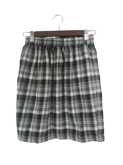 【中古】イーハイフンワールドギャラリー スカート ウエストゴム ひざ丈 チェック サイズF グレー 白 レディース